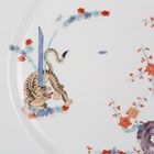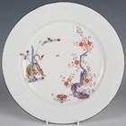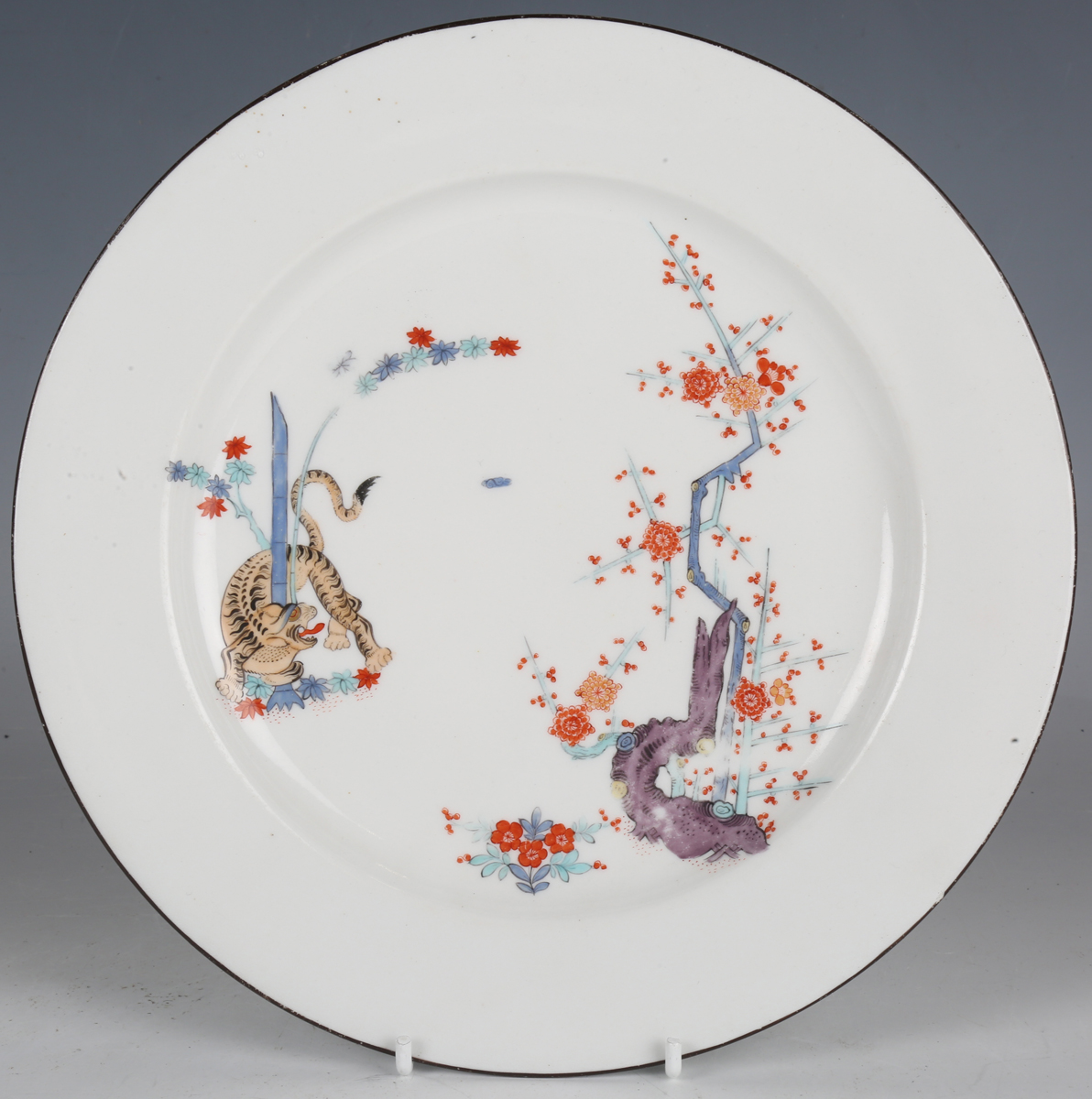 A rare Barr, Flight & Barr Worcester Kakiemon plate, early 19th century, painted with a version of the Yellow Tiger pattern within a chocolate brown edged rim, impressed factory mark, diameter 22.8cm. Provenance: The Flight Collection.