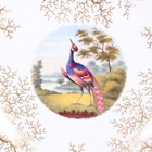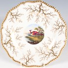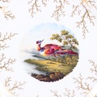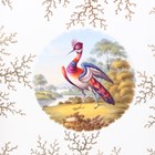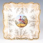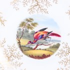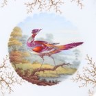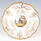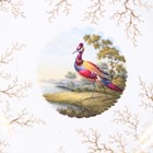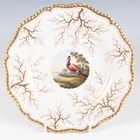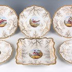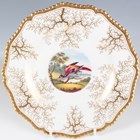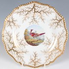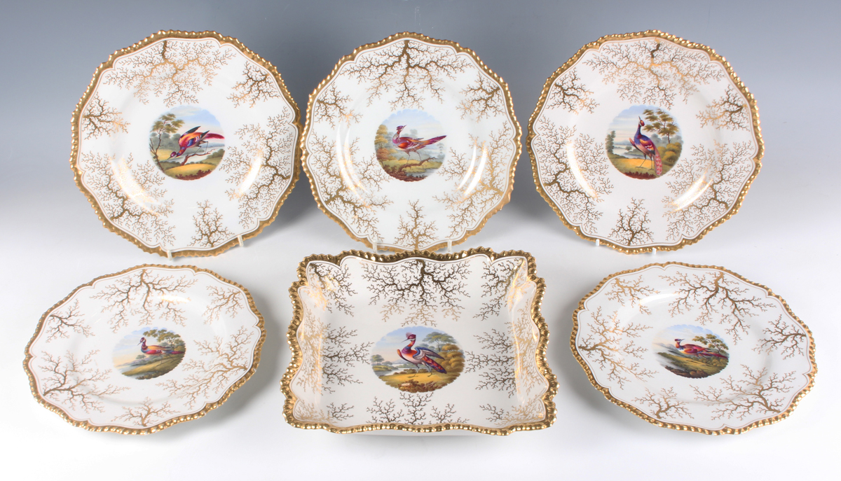 A matched Flight, Barr & Barr Worcester part dessert service, early 19th century, probably painted by Davis, with circular panels of fancy or exotic birds within gilt weed framing and gilt gadrooned rims, comprising a square dish, length 23.5cm, one plate 23cm diameter, one plate 22.5cm diameter and three plates 22cm diameter, various impressed and printed marks to bases (some faults and restoration). Provenance: The Flight Collection.