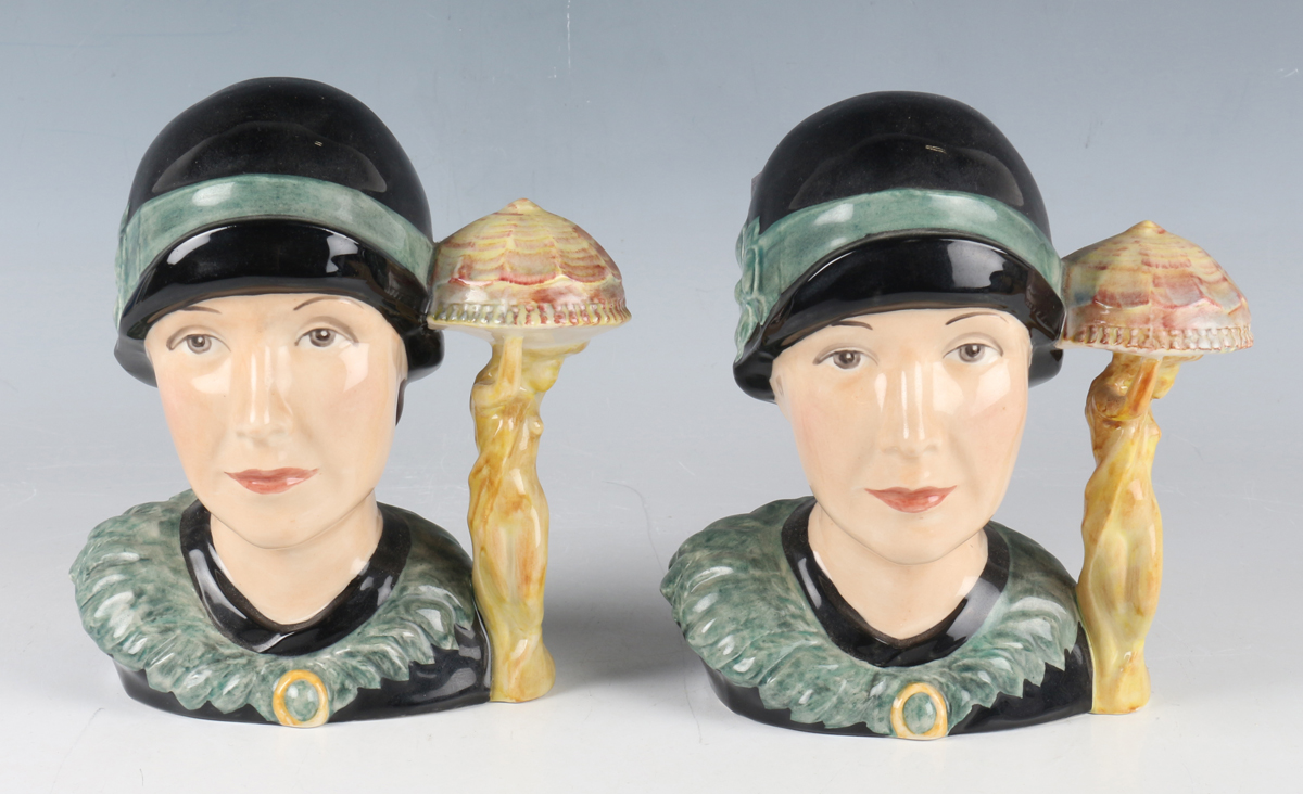 Two Kevin Francis limited edition Susie Cooper character jugs, modelled by Andy Moss, Nos. 151 and 157 from an edition of 350, height 15cm.