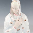 An Italian pottery model of the Madonna by Giovanni Ronzan, mid-20th century, the half-length bust modelled wearing floral decorated clothing, her head bent and eyes closed, black printed and painted marks to base, height 23cm