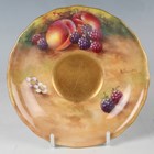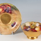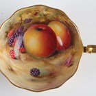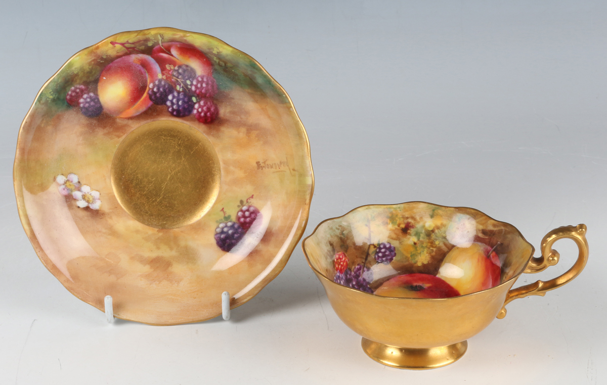 A Royal Worcester fruit painted teacup and matched saucer, dated 1926 and 1929, the cup painted to the interior by W. Bee, signed, gilt exterior, the saucer painted by E. Townsend, signed, diameter 14.5cm, puce printed marks to bases.