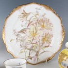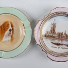 A small group of Royal Crown Derby, late 19th/early 20th century, comprising a two-handled vase painted in blue with sailing boats within vertical foliate framing, height 22cm, a similar vase and cover with scroll handles, height 20cm, a yellow ground vase painted with a sailing boat panel, height 12cm, and two smaller yellow ground pieces, together with a pair of Derby cobalt blue ground diminutive bottle vases decorated in gilt with figures, height 9cm, a Royal Worcester match holder decorated with birds, two Paragon ashtrays and a pair of George Jones plates decorated with flowers, diameter 22.5cm (faults and restoration).