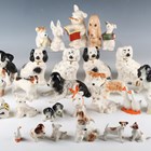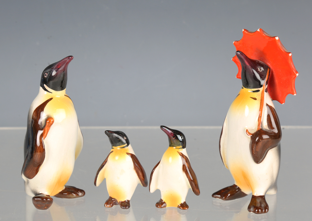 A family of four Beswick penguins, comprising one holding an umbrella, one with a walking cane and two chicks, model Nos. 800, 801, 802 and 803, a pair of Beswick geese, No. 820, and a gosling, No.821, together with a large mixed group of mostly Beswick and Sylvac dogs, including Beswick dog with glasses reading a book, No. 831, Sylvac dog with his paw in a sling, No. 1433, and Sylvac dog with a bow, No. 1119 (minor faults).
