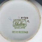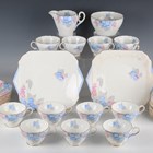 An Art Deco Shelley Blue Phlox pattern Henley shape part service, pattern No. 0170, comprising twelve teacups and saucers, twelve square tea plates, length 16.3cm, two square sandwich plates, length 24.5cm, sugar bowl and milk jug.