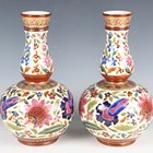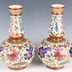 A pair of Austrian pottery vases by Josef Steidl, Znaim, early 20th century, of gourd shape, painted with gilt enriched Persian style floral decoration and gilt ground floral banding, impressed and black printed marks to bases, height 31cm.