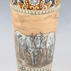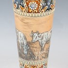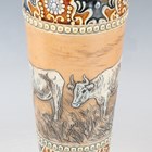 A Doulton Lambeth stoneware vase, early 20th century, decorated by Hannah Barlow, monogrammed, with grazing cattle between foliate panelled framing against a mottled blue/green ground, impressed and incised marks to base, height 32.5cm.