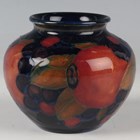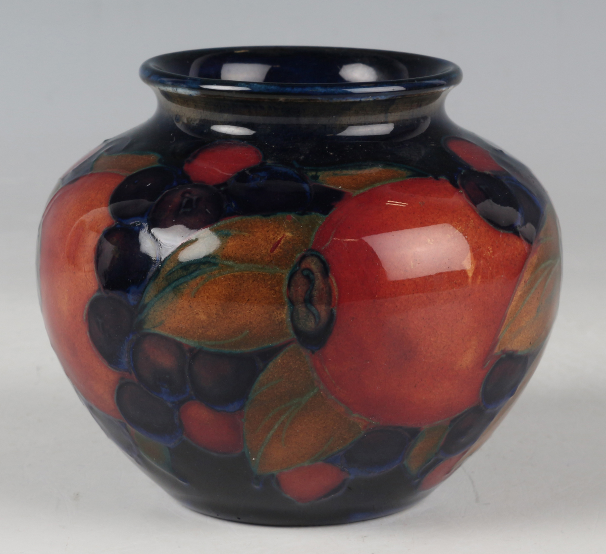 A Moorcroft Pottery Pomegranate pattern vase, 1920s, of bulbous shape with shaded blue ground, impressed marks to base, height 7cm.