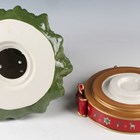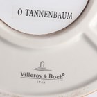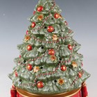 A Villeroy & Boch musical Christmas Tree centrepiece, modelled with the pierced, decorated tree supported on a musical circular base printed with Christmas motifs and two relief bows, total height 33cm.