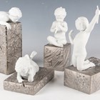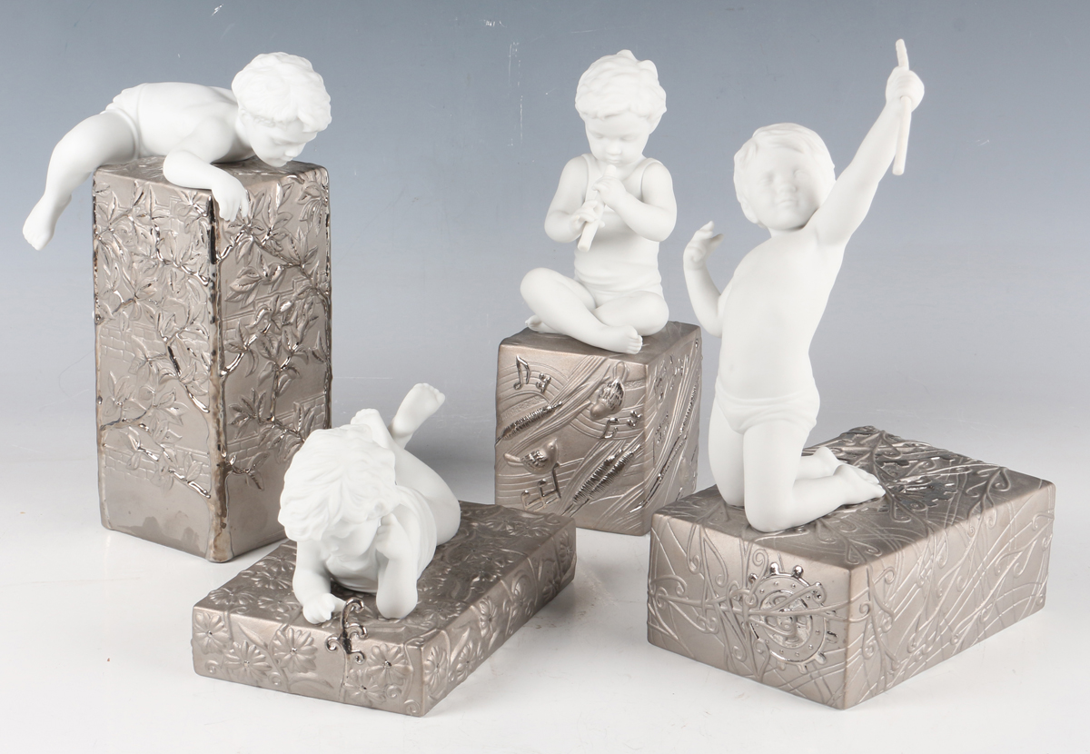 A set of four Lladro sculptures modelled as bisque children on matt and silvered bases, comprising Creating, No. 8283, Playing, No. 8282, Striving, No. 8284, and Wondering, No. 8280, tallest 22cm, with paperwork.