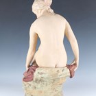 A large Royal Dux Bather figure, early 20th century, the female nude seated on rockwork drying her foot with a draped piece of fabric, applied pink triangle to base with impressed shape No. 1360, height 53cm.
