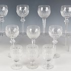 A set of five Waterford Curraghmore pattern hock wine glasses, height 19cm, together with four Waterford Colleen pattern hock wine glasses, height 19cm, and three Waterford short stem Colleen pattern claret wines, height 12cm.