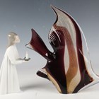 A Marcolin glass fish, mid to second half 20th century, the clear body with brown striped and gilt flecked detail, engraved marks to base, height 29cm, together with a Lladro figure Girl With Candle, No. 4868, boxed.