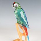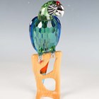 A Swarovski Crystal Birds of Paradise Macaw, designed by Roland Schuster, circa 2011, perched on a wooden base, height 23cm, boxed.