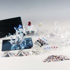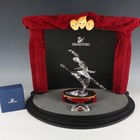 A Swarovski Collectors Society Magic of Dance figure Anna, circa 2004, designed by Anton Hirzinger, with inscribed name plaque, boxed, together with a group of other Swarovski items, including a Mermaid from the Fables and Tales group, holding a pearl in her hand, height 10cm, a model of the Santa Maria from the When We Were Young series, with two mirrored display stands, a mouse on a square base, a hedgehog, a waterlily candleholder, three Collector's Club membership tulips and a large Swarovski branded display stand in the form of a stage with velvet curtains, most items boxed.