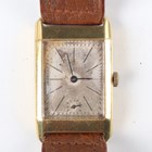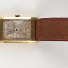 A Vacheron & Constantin Genève 18ct gold rectangular cased gentleman's wristwatch, the signed and jewelled manual wind movement numbered '420160', the signed silvered rectangular dial with subsidiary seconds, the signed case back interior detailed '18K 0,750' and numbered '262072', import mark London 1937, case width 2.2cm, case length including lugs 3.6cm, on a brown leather strap.