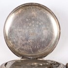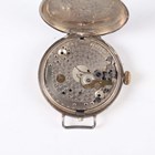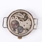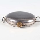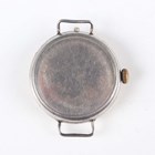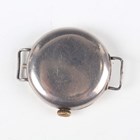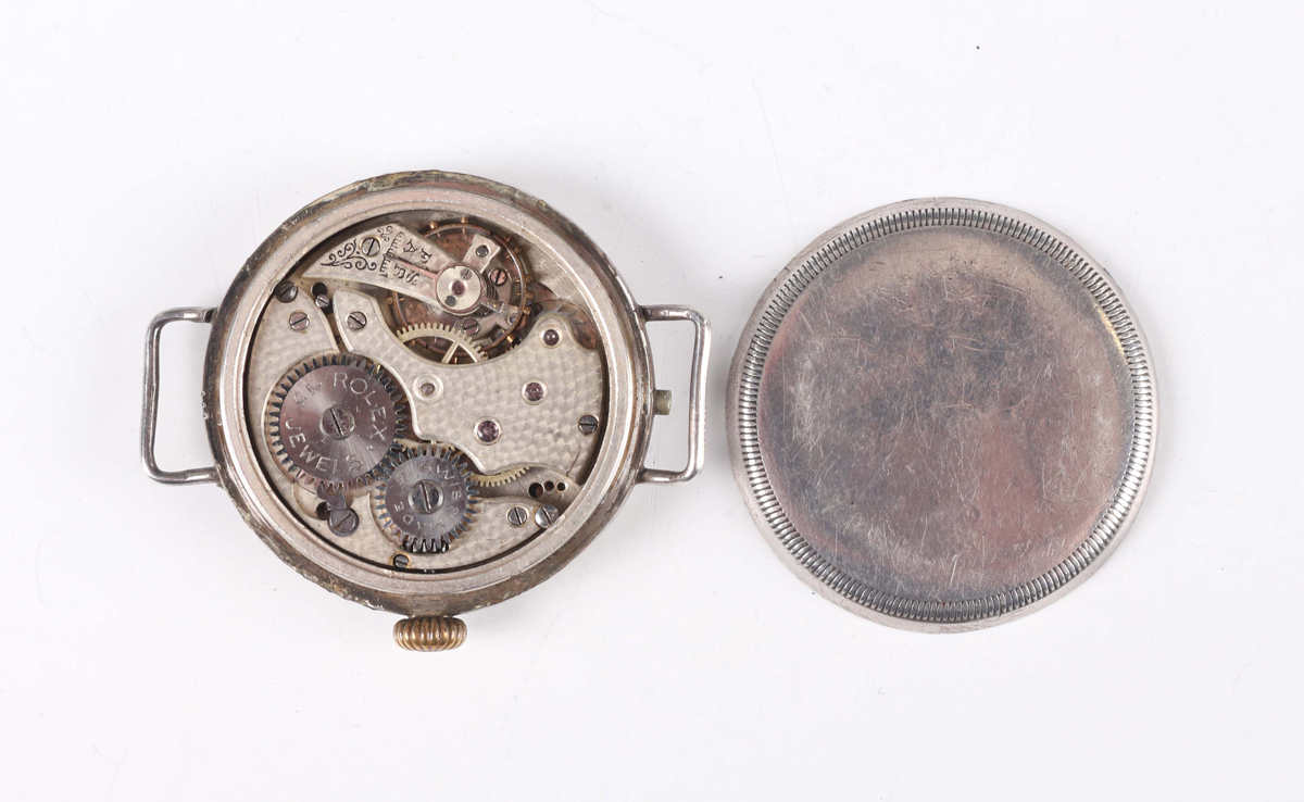A First World War period Rolex silver circular hunting cased gentleman's trench wristwatch with signed and jewelled manual wind movement, the signed W & D case back and hinged front numbered '654339' and '654334' respectively, import mark London 1915, case diameter 3.4cm (lacking dial).
