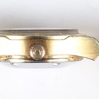 An Omega Automatic gilt metal fronted and steel backed lady's bracelet wristwatch with signed and jewelled movement, the signed silvered dial with baton hour markers, centre seconds and date aperture, the tapered link bracelet with signed foldover clasp, case diameter 2.6cm.