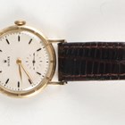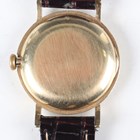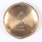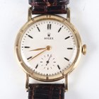 A Rolex 10K gold circular cased gentleman's wristwatch with signed and jewelled manual wind movement, the signed silvered dial with black Roman hour numerals and subsidiary seconds, the case with square hour markers to milled bezel, the signed case back interior detailed '10K 0,417' and numbered '509' over '8170', case diameter 3.1cm, on a brown leather strap.