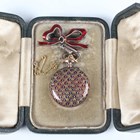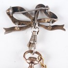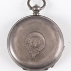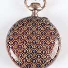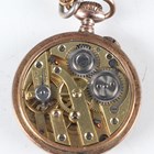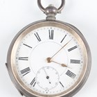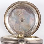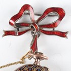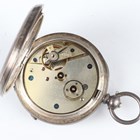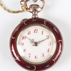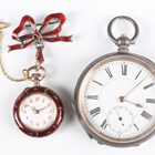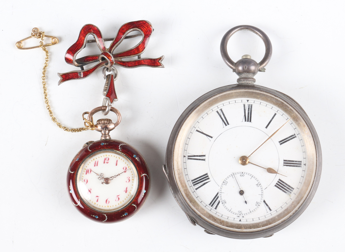 A silver gilt, red and blue enamelled keyless wind open faced lady's fob watch with unsigned gilt jewelled cylinder movement, the case back interior detailed 'ARGENT DORE O, 935 SWISS', case diameter 2.8cm, with a red enamelled bow brooch fitting and leather case, together with a silver cased key wind open faced gentleman's pocket watch with unsigned cylinder movement, the case detailed '0,935', case diameter 5.2cm.