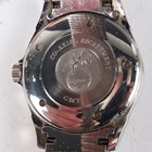 An Omega De Ville GMT Automatic Co-Axial stainless steel gentleman's bracelet wristwatch, Ref. 168.1702, circa 2006, the signed and jewelled 2628A caliber movement numbered '80407015', with dust cover, the signed black dial with silvered baton hour markers and date aperture, the signed case back interior numbered '168 1702', the signed brick link bracelet with foldover clasp, numbered '1600/940', with box, instruction booklet, chronometer warranty, other related paperwork and three spare links.