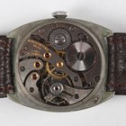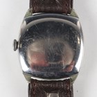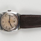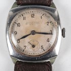 A Winegartens stainless steel cushion cased gentleman's wristwatch with signed and jewelled manual wind movement, the signed silvered dial with black Arabic hour numerals and subsidiary seconds, the Dennison case back numbered '5817', case width 3cm, on a leather strap.
