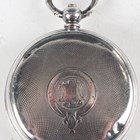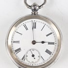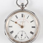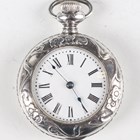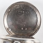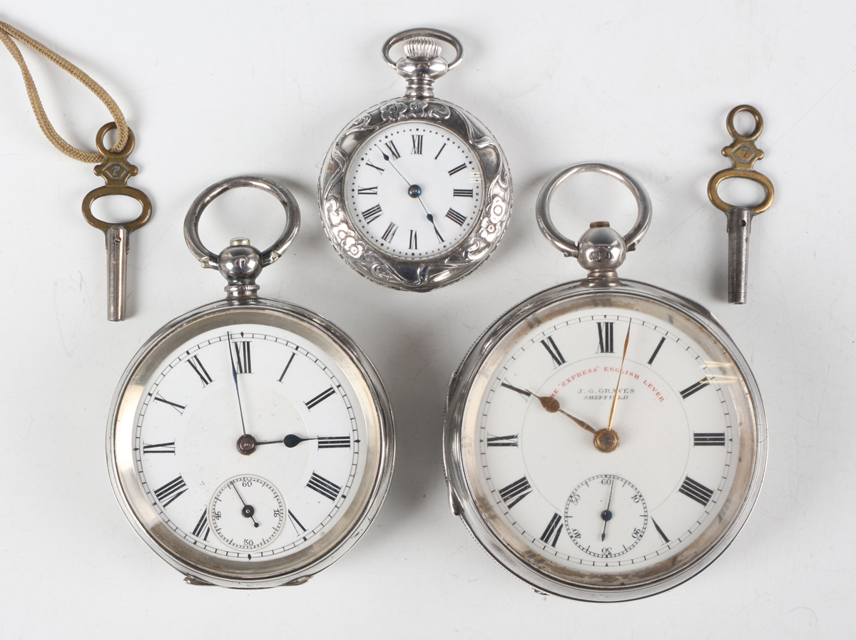 "A silver cased keywind open-faced gentleman's pocket watch, the enamelled dial with black Roman hour numerals, subsidiary seconds and detailed 'The ""Express"" English Lever J.G. Graves Sheffield', Chester 1901, case diameter 5cm, together with another silver cased gentleman's pocket watch, case diameter 4.7cm, and a sterling cased keyless wind open faced lady's fob watch, the case decorated in relief with Art Nouveau scrolls and trailing vine, case diameter 3.2cm."