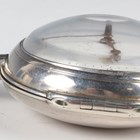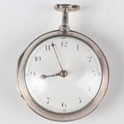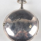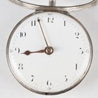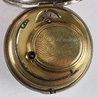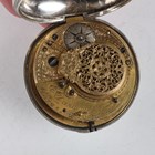 A George III silver pair cased keywind open-faced gentleman's pocket watch, the gilt fusee movement with verge escapement and pierced and engraved balance cock, the backplate signed 'E. Dickason London No. 725', with similarly detailed gilt brass dust cover, the white enamelled convex dial with black Arabic hour numerals, the inner and outer case London 1805, outer case diameter 5.5cm.