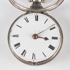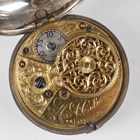 A George III silver pair cased keywind open-faced gentleman's pocket watch, the gilt fusee movement with verge escapement and pierced and engraved foliate balance cock, the backplate detailed 'M.A. Coles London N. 42451', the white enamelled convex dial with black Roman hour numerals, the inner and outer cases London 1790, outer case diameter 5.1cm.