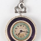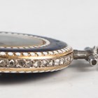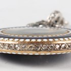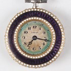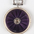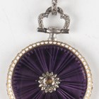 An early 20th century Cartier gold and platinum, diamond set and enamelled keyless wind open-faced lady's pendant fob watch, with signed and jewelled gilt movement, the engine turned silvered dial with black Arabic hour numerals and signed 'Cartier', the purple enamelled bezel with white beaded borders, the similarly enamelled case back set with a central rose cut diamond within a surround of smaller rose cut diamonds, the case back interior with gold hallmarks and numbered '4702', all beneath a diamond set platinum suspension and swivel, total weight 17.2g, case diameter 2.6cm..