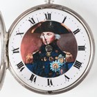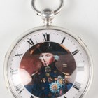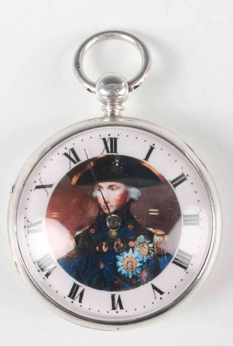 A Victorian silver cased keywind open-faced gentleman's pocket watch with unsigned gilt fusee movement, the white enamelled dial later printed with a head and shoulders portrait of Admiral Nelson, Chester 1860, case diameter 5.2cm.