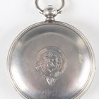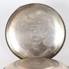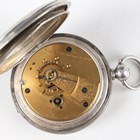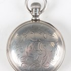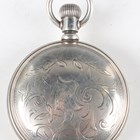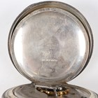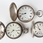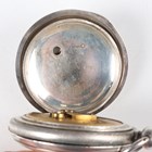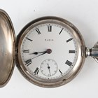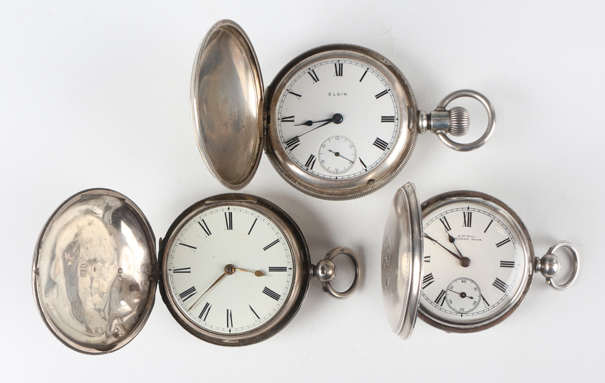 An Elgin silver hunting cased keyless wind gentleman's pocket watch, with signed and jewelled movement, the signed white enamelled dial with black Roman hour numerals and subsidiary seconds, the Keystone sterling watch case with engraved foliate decoration, import mark Chester 1914, case diameter 5.6cm, together with two silver hunting cased keywind gentlemen's pocket watches, London 1832 and Birmingham 1892, case diameters 5cm and 5.4cm.