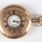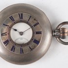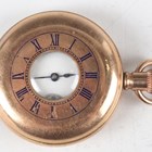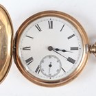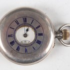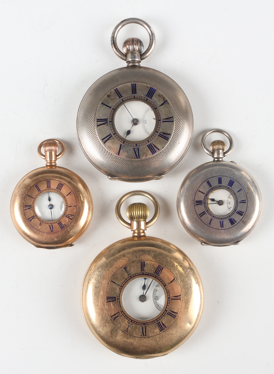 A 0.935 silver half-hunting cased keyless wind gentleman's pocket watch, the gilt three-quarter plate movement detailed 'J.W. Benson...', case diameter 5cm, together with a 0.935 silver half-hunting cased lady's fob watch, case diameter 3.7cm, a Waltham gilt metal half-hunting cased gentleman's pocket watch, case diameter 5cm, and a similar lady's fob watch.