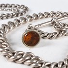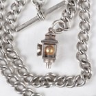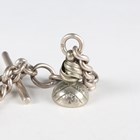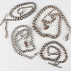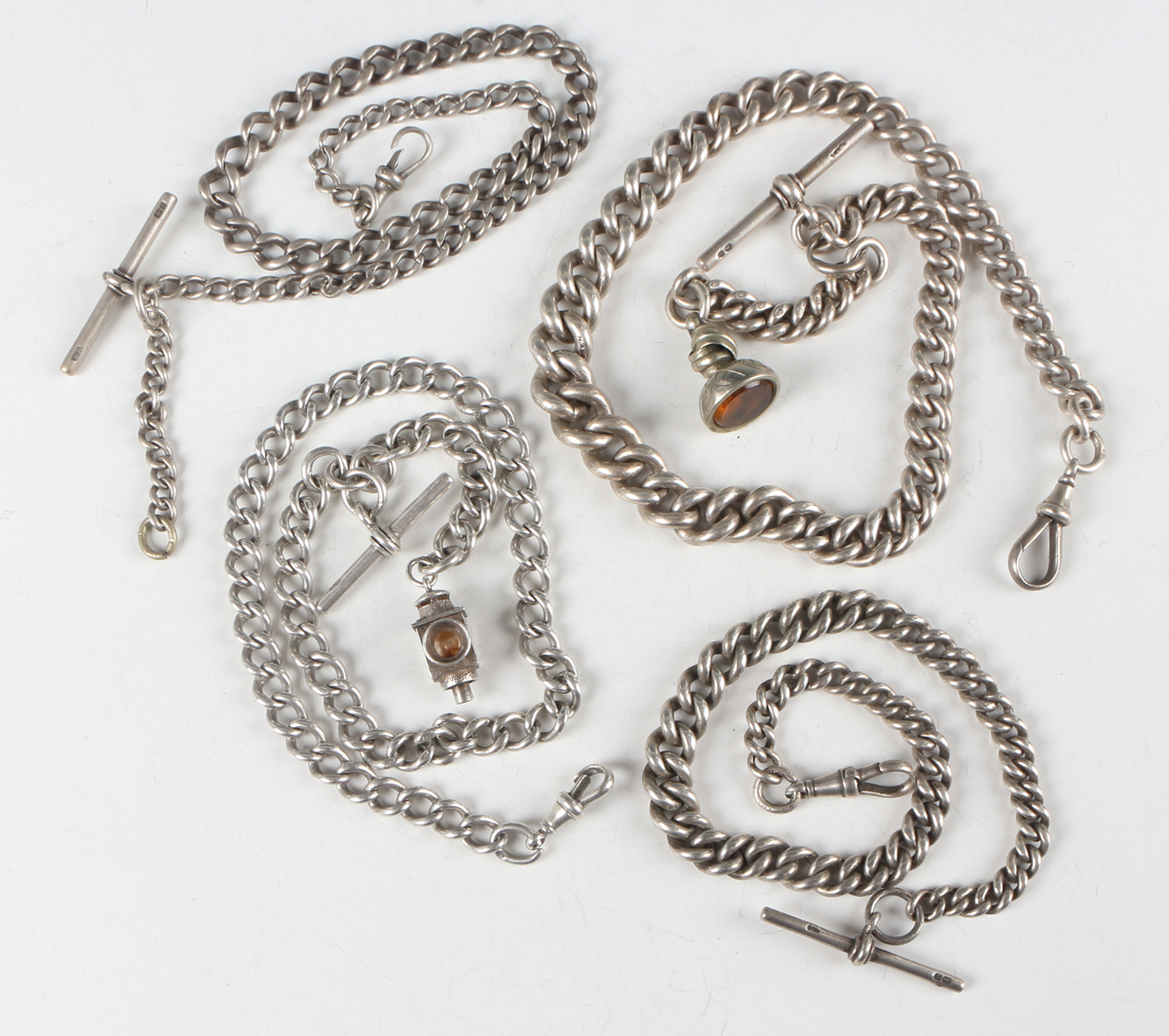 A late Victorian silver graduated curblink Albert watch chain, fitted with a T-bar, swivel and fob seal, Birmingham 1896 by Henry Allday & Son, length 45cm, together with three other silver curblink Albert watch chains, lengths 29cm, 41cm and 41.5cm, total weight 205g.