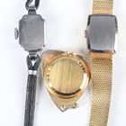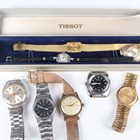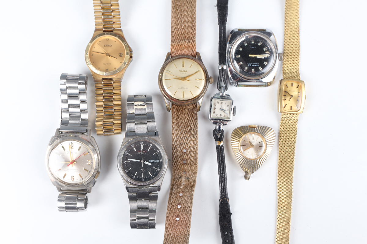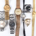 A Timex steel backed gentleman's wristwatch with manual wind movement and signed black dial, case width 3.6cm, and a Seiko Quartz steel gentleman's bracelet wristwatch, case diameter 3.3cm, together with three other gentlemen's wristwatches, two ladies' wristwatches and a Smiths gilt metal cased pendant watch.