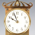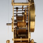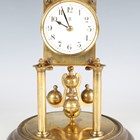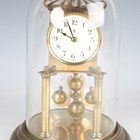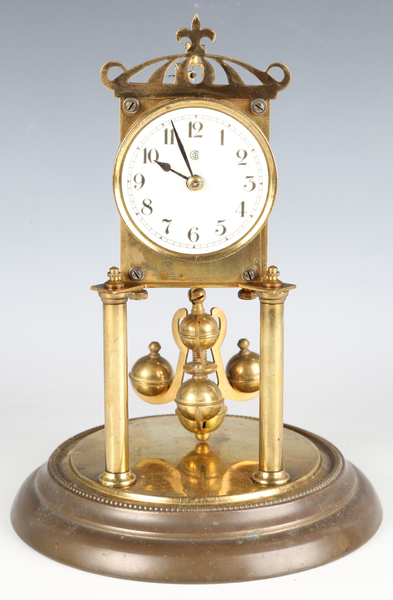 An early 20th century brass torsion anniversary mantel timepiece by Badische Uhrenfabrik, the cream circular dial and backplate with maker's mark, on turned columns and a circular base with glass dome, height 27cm.