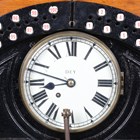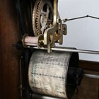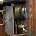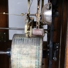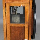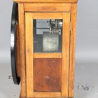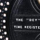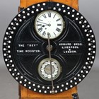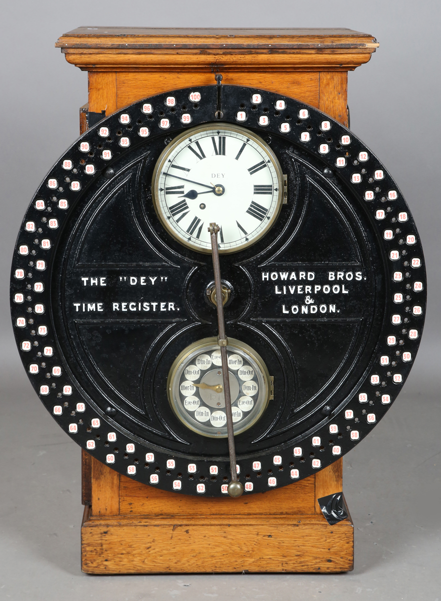 An early 20th century oak cased 'The Dey' Time Register by Howard Bros, Liverpool & London, the signed 25-inch black enamelled cast iron dial with subsidiary clock and In and Out dials, the oak case with glazed doors to sides and plinth base, height 85.5cm, with pendulum.