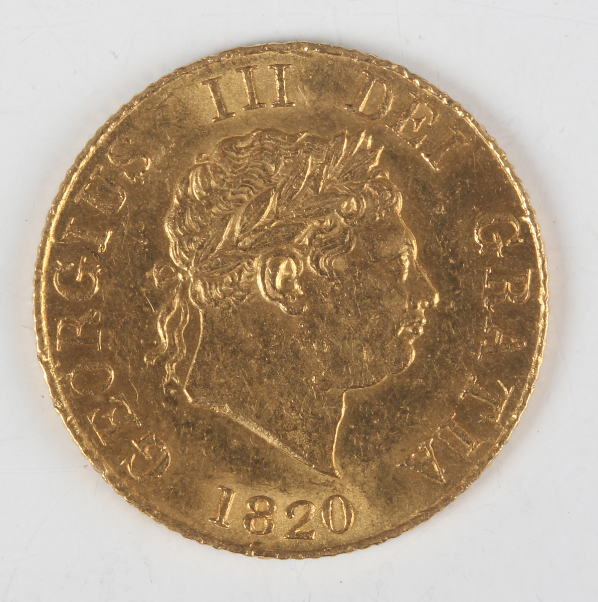 A scarce George III half-sovereign 1820, laureate head, reverse with crowned shield, Sp 3786 (very fine).