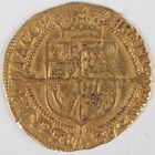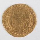 A James I hammered gold half-laurel, value behind bust, mintmark trefoil, Sp 2641A, weight 4.5g (creased across bust).