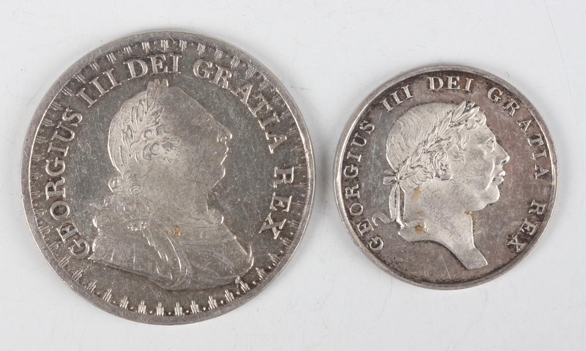 A George III three shillings bank token 1811, bust in armour, Sp 3769 (very fine, cleaned in the past), together with a George III shilling-and-sixpence bank token 1812, laureate head, Sp 3772 (very fine-uncirculated, some reflective tone to the fields).