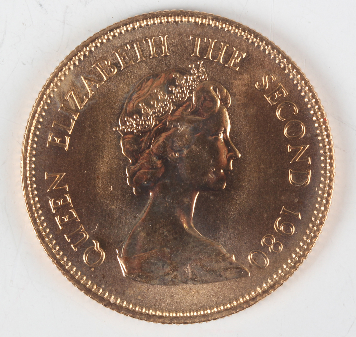 A Hong Kong Elizabeth II Royal Mint gold one thousand dollars lunar year coin 1980 celebrating the Year of the Monkey, deluxe-cased with certificate.