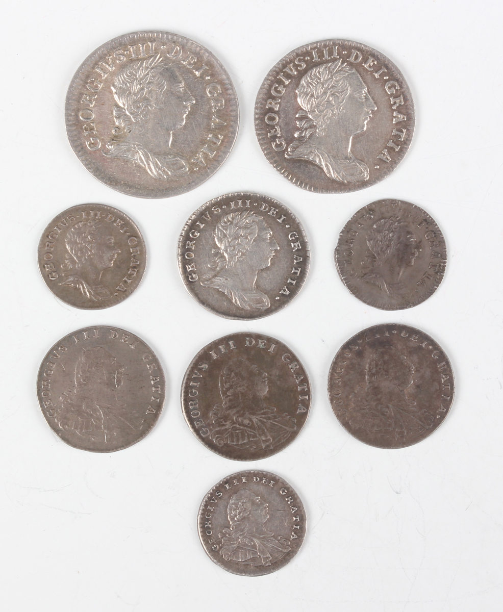 A group of George III Maundy money, including a fourpence 1763, a threepence 1762,a twopence 1786 and a penny 1776 (fine-extremely fine throughout, some possibly cleaned in the past but retoning).