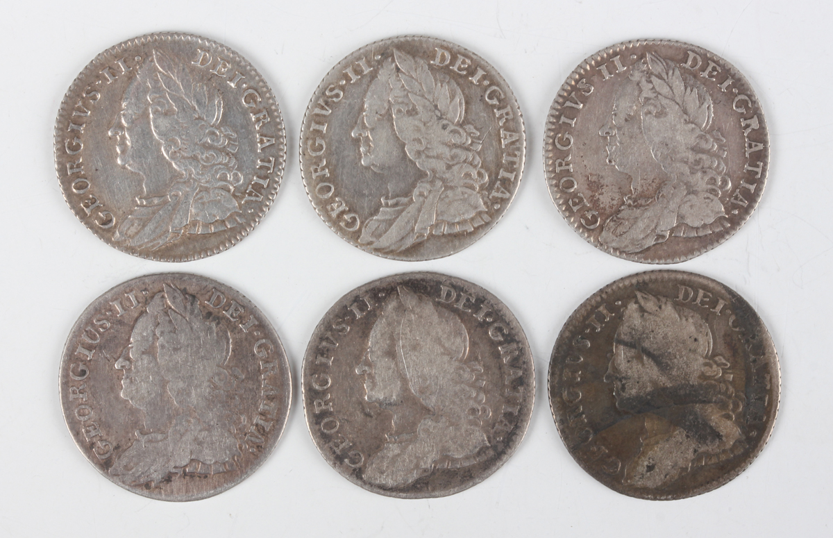 A small group of George II sixpences, including two 1757, Sp 3711, and 1758, Sp 3711 (good-very fine throughout, some cleaned in the past).