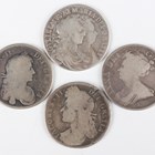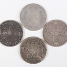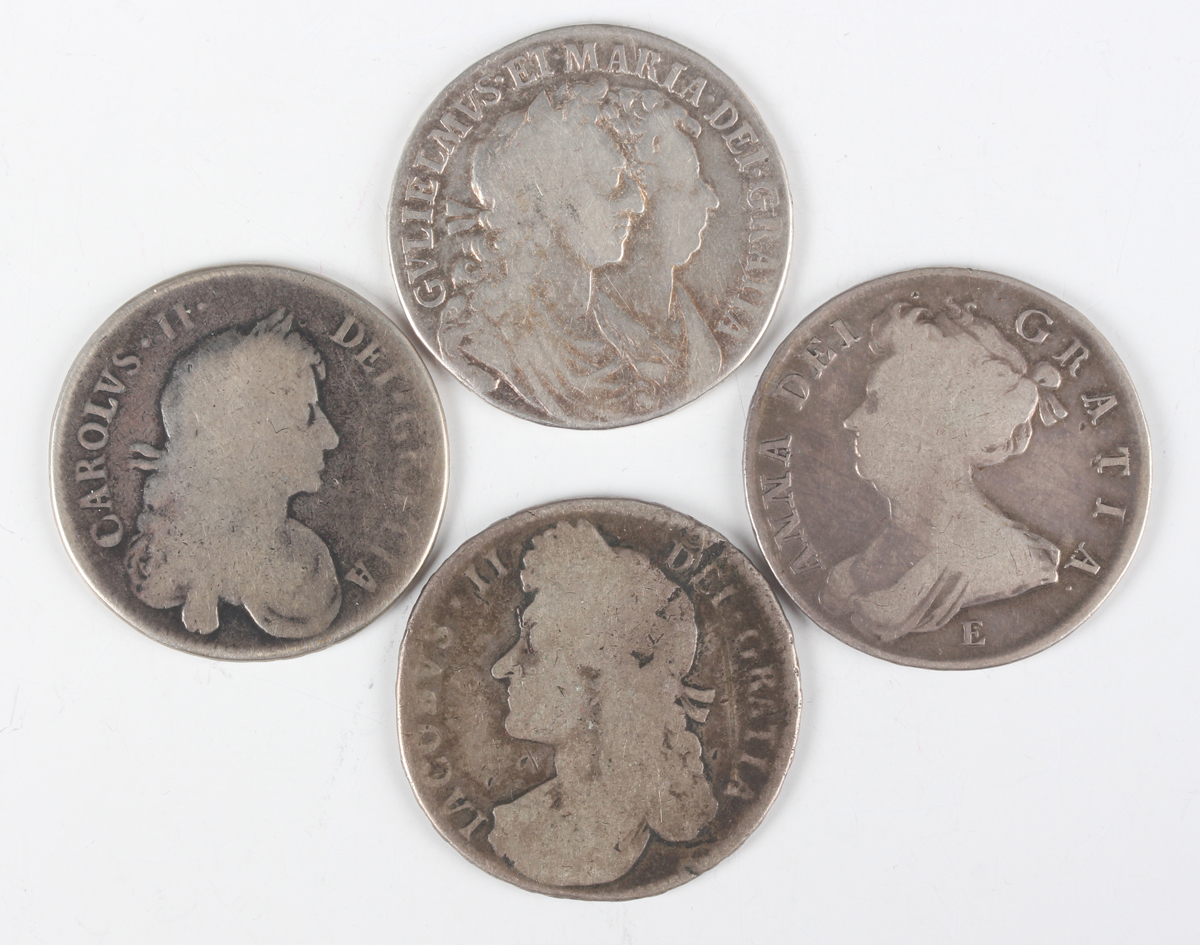 A group of four late 17th and early 18th century silver half-crowns, comprising William and Mary 1689, James II 1688, Charles II 1671 and Anne 1707, Edinburgh Mint.