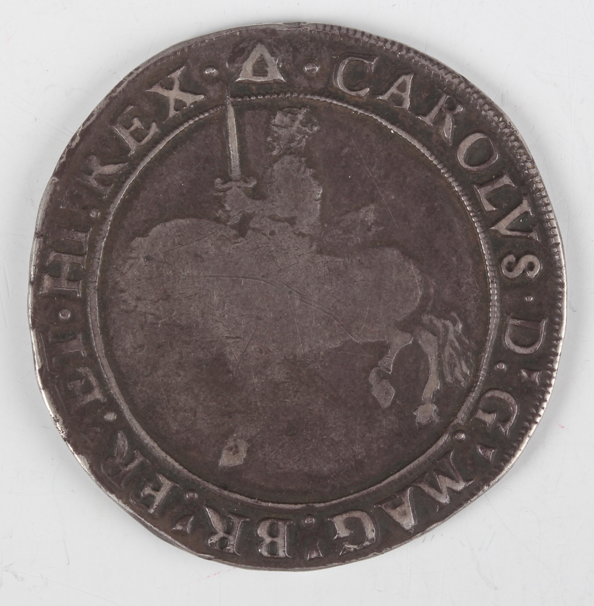 A Charles I hammered silver crown 1625-1649, mintmark triangle, Tower Mint, Sp 2758 (good-fine, toned).