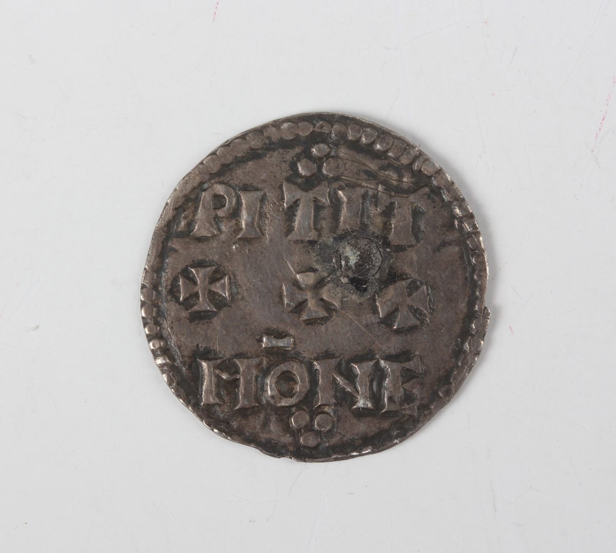 An Edward the Elder hammered silver penny 899-924, two-line type, moneyer 'Pitit', Sp 1087 (plugged and repaired at some point).