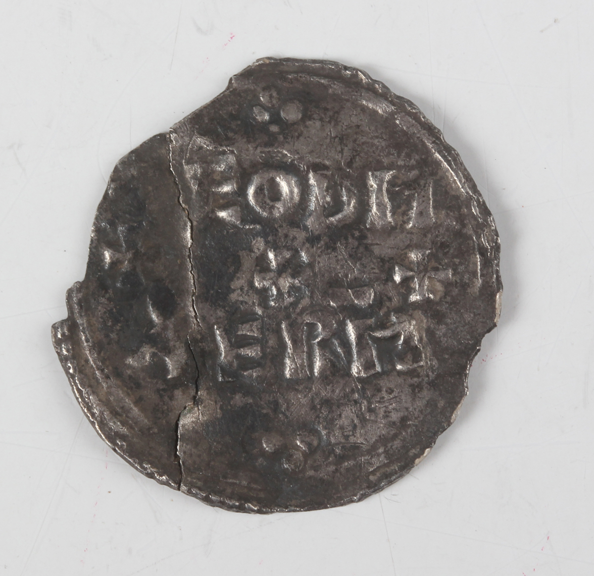 An Eadred hammered silver penny 946-955, two-line type, moneyer's name 'Theodmaer' between three crosses, trefoil of pellets above and below flan, Sp 1113 (cracked with some edge loss).