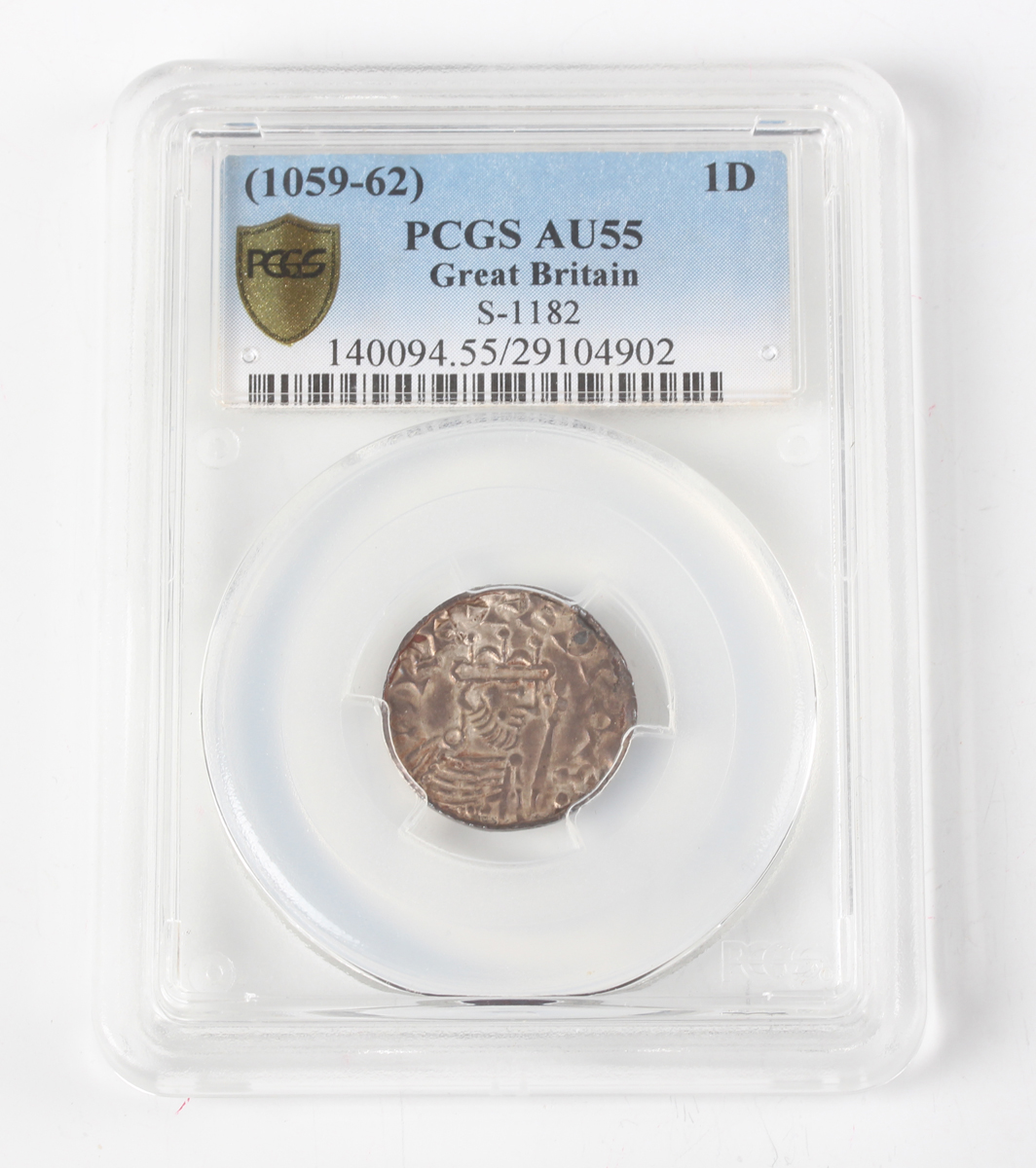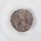 An Edward the Confessor hammered silver penny 1042-1066, hammer cross type, moneyer probably Outhgrimr or Odgrim-on-Eofer, York Mint, Sp 1182, slabbed and graded AU55 by PGCS (very nicely struck up with good rich tone throughout).