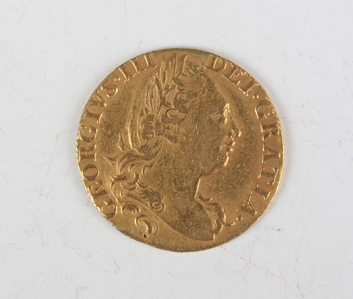 A George III guinea 1774, fourth laureate head, Sp 3728 (signs of previous mounting on edge).