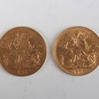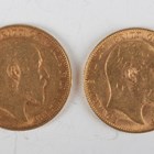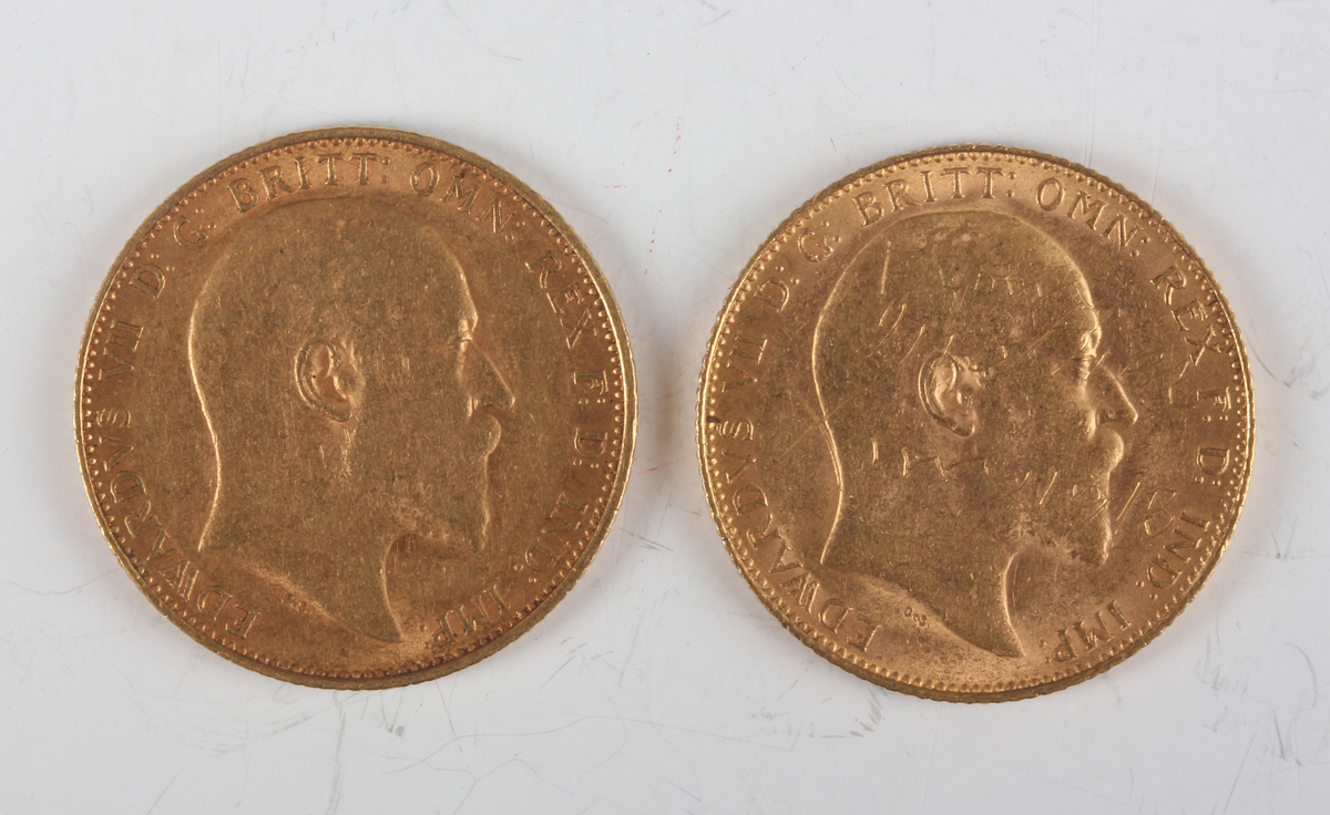 Two Edward VII sovereigns, 1908 and 1908 Melbourne Mint.