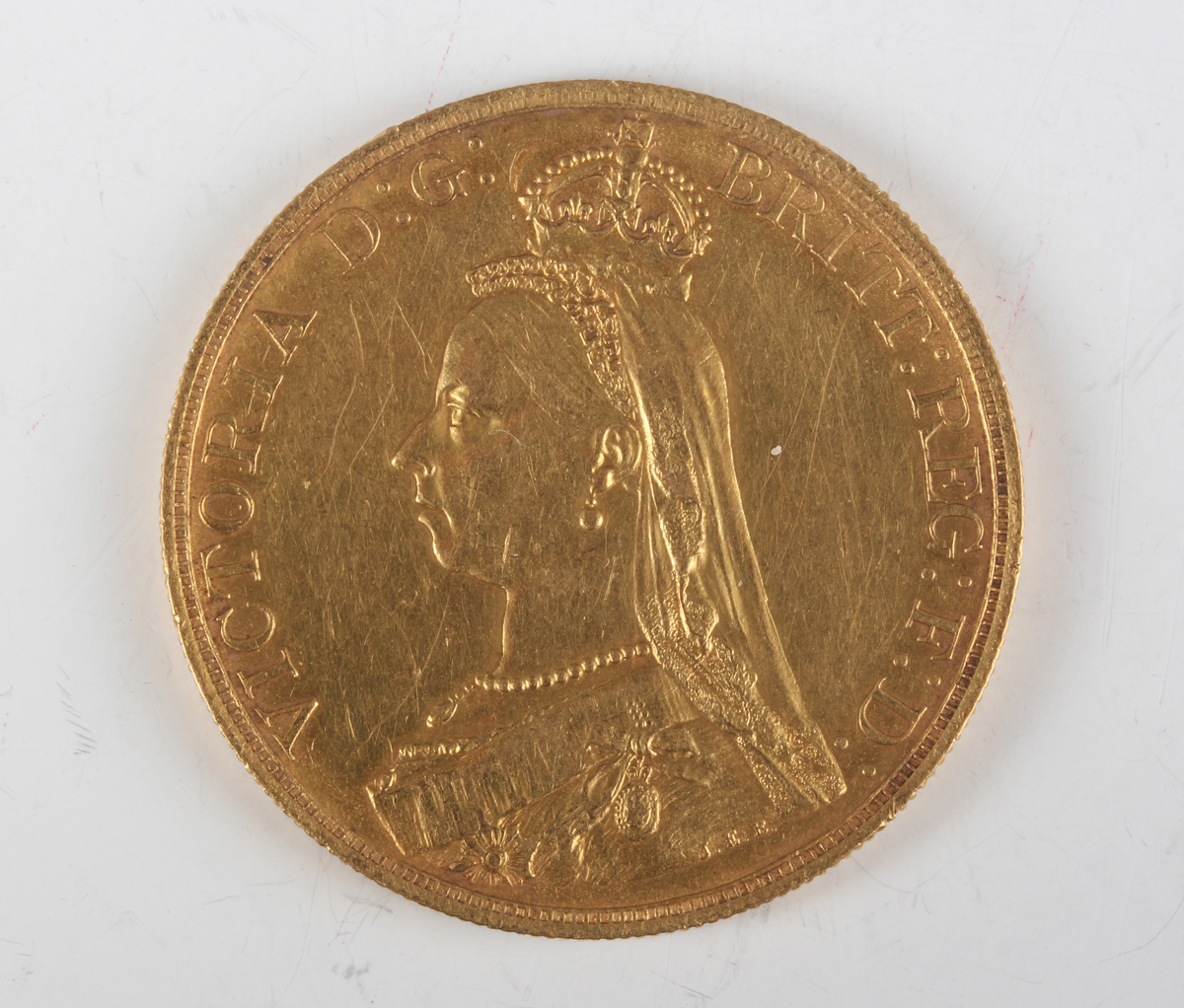 A Victoria Jubilee Head gold five pounds 1887, Sp 3864 (good-very fine).
